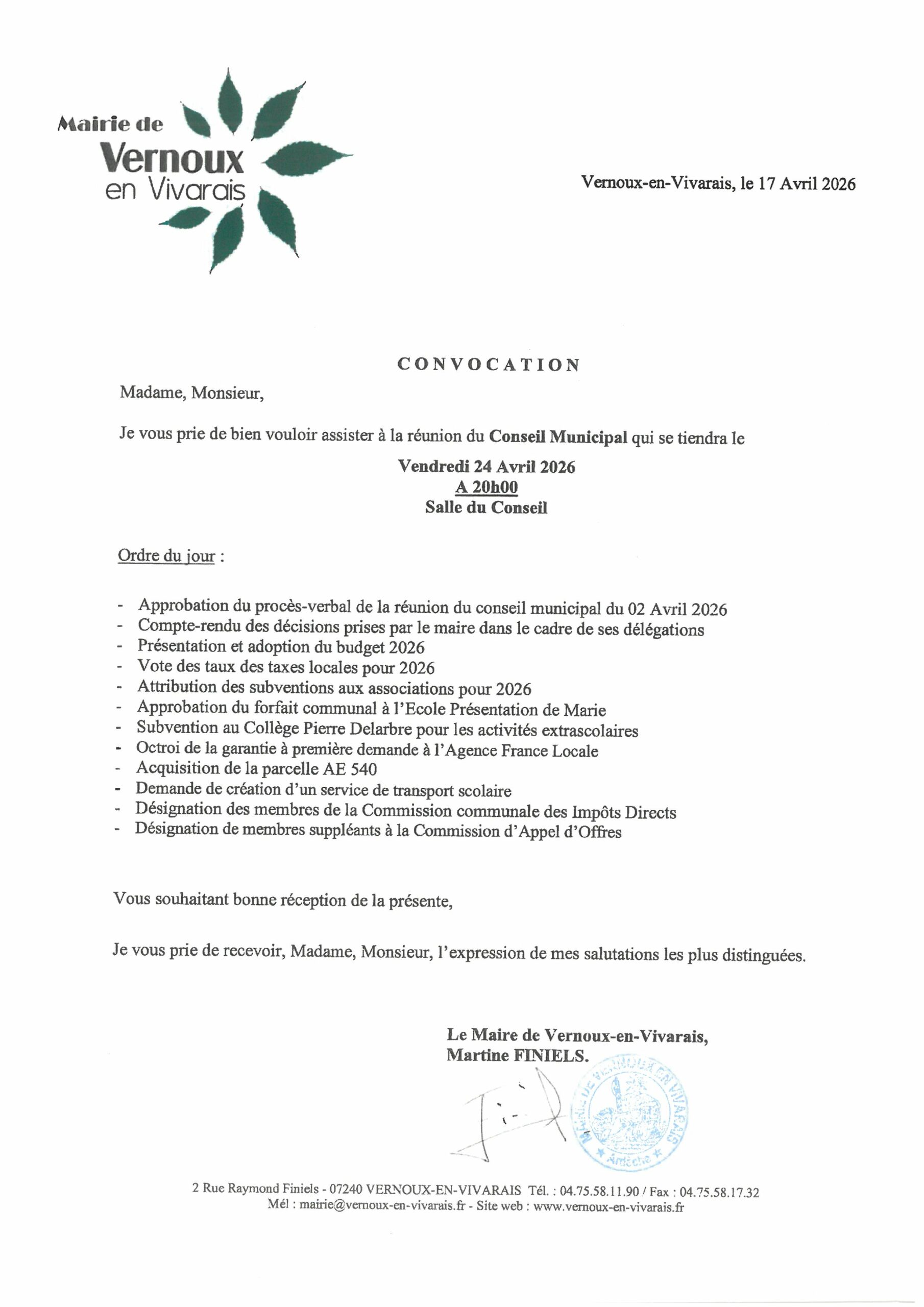Démarchesen ligne CNI Passeport Urbanisme Numéros utiles Gîtescommunaux Campingmunicipal ACTUALITÉS Journée de la solidarité Dimanche 26 avril 2026 Lac aux Ramiers 3 mars, 2026 Lire la suite Voir toutes les actualités ACTUALITÉS Venez construire votre projet professionnel au MIX 16 mars, 2026 Lire la suite Voir toutes les actualités ACTUALITÉS Frédéric Sallée présente son livre Histoire intime d’une rafle » 22 avril – 14h30 Salle du lac aux Ramiers 31 mars, 2026 Lire la suite Voir toutes les actualités ACTUALITÉS Atelier trico-thé et art créatif samedi 16 mai à partir de 14h30 résidence Beauregard 20 avril, 2026 Lire la suite Voir toutes les actualités ACTUALITÉS LOTO APEL Présentation de Marie Dimanche 24 mai à partir de 14h 20 avril, 2026 Lire la suite Voir toutes les actualités Mairie de Vernoux en Vivarais